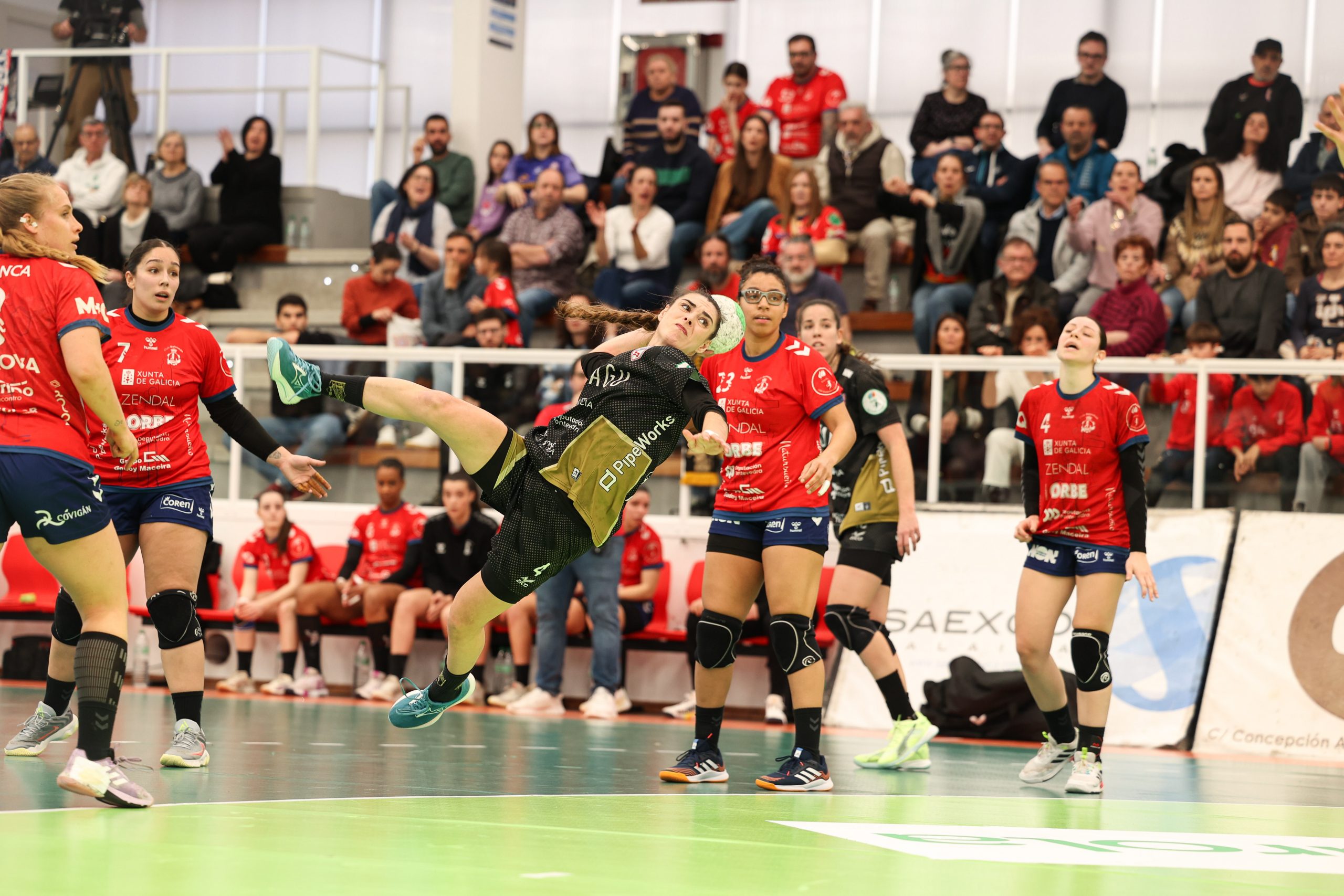 Ana Seabra solicitó el tiempo muerto para tratar de hacer entrar en razón a las suyas, que respondían con solvencia en defensa -y apoyadas por una Mínguez que estaba siendo un salvavidas ante la red- pero seguían precipitándose en el juego ofensivo y concediendo cuando no podían permitírselo. Surtió efecto, pero de manera retardada, pues aunque la reanudación llegó con el gol de la ventaja a 5 goles de las porriñesas, el anfitrión consiguió confeccionar por fin un 3-2 que las dejaba con opciones de cara a los cinco minutos previos al descanso (7-10, min. 25). Isma Martínez paró ahora el crono para evitar la crecida local que ya se temía.